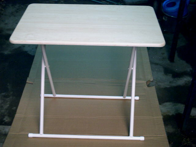 市販の折り畳み式の机や椅子は使い易く、折り畳めばコンパクトになり、収納スペースを節約できて便利です。 |