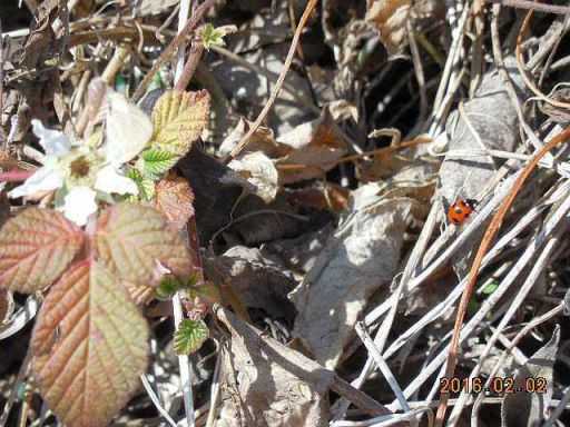この日は暖かく、テントウムシがせわしげに歩き回って、餌のアリマキ(アブラムシ)を探しているようでした。 |