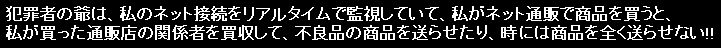 犯罪者の爺は、私のネット接続をリアルタイムで監視していて、私がネット通販で商品を買うと、私が買った通販店の関係者を買収して、不良品の商品を送らせたり、時には商品を全く送らせない事も有りました。 ネット通販会社の社長宛に左の画像の書留郵便で手紙を出した際の、手紙の文頭部分です。 私は、ごく最近、インターネット通販で、「梶。■■■■■■」と「○○○○○○ 楽天市場支店」で買い物をした者ですが、購入した商品が届きません。 いずれも、・・・・・・・・・・・のはずです。 「梶。■■■■■■」の方は、注文時に届いた自動配信メールまで、私のメールボックスから削除され、ご丁寧にもゴミ箱からも完全に削除され、更には、購入した「64G-SDHCカード ・・・・・」の表示も「梶。■■■■■■」のサイトの表示商品の一覧から消えて・・・・・、楽天銀行の私の銀行口座には不正アクセスできなかったようで、楽天銀行の入出金明細の履歴に記録が残っていました。 私はインターネット・・・・・・として「・・・・・・・・・・」を使っていますが・・・・・・・・・・の関係者を買収している上に、ネットに不正アクセスを自在にできる人間を使っていて、不正アクセスの、やりたい放題です。 今までに、「梶。■■■■■■」から二桁の回数買い物をしていると思いますが、今回は、入金確認メールや発送手配メールなどが一切届かず、私のホームページに記載している犯罪者の爺に5万円、10万円の金を貰って犯罪者の爺の犯行に協力したのだと判断しています。 私の母を毒殺した後で、共犯の・・・・・・・・・・の社長の妾の息子を、「警察に捕まったら死刑になる」と脅して、「・・・・・・・・・・・・まで買収する事」を口実にして、・・・・・・・・・・の社長の妾の息子に、・・・・・・・・・・梶vから総額で20億円以上?の大金を盗み出させた本件の犯罪者の爺にとって、5万円、10万円の金は紙屑同然のはした金です。 ・ ・ ・ ・ ・ 犯罪者の爺に5万円、10万円の金を貰って犯罪者の爺の犯行に協力した「梶。■■■■■■」の関係者は、私の母と・・・・・・・・に病死に見せかけて毒殺した女の看護師が、警察庁が野党に国会質問をされた後に死刑を恐れて警察に自首と・・・・・・・・、手紙に添えた書類に記載した・・人の人間の、少なくとも・・人の人を殺害してい、刑事裁判に掛けられたら死刑確実の凶悪犯の犯行に加担した事になるのでは。 ・ ・ ・ ・ ・ ホームページに記載できない裏の事情を詳細に記載した上で、手紙に添えて、本件の犯罪者の爺が起こした「この凶悪事件」の際に新聞各社の社長宛や野党三党宛にも手紙を出させて頂いた手紙+添付文書も添えて出しました。 「○○○○○○ 楽天市場支店」の方は、書留郵便の手紙が先方に届いた翌日に購入した商品が配達されましたので、その通販会社が運送会社に連絡した為に、犯罪者の爺に買収されて商品を配達しなかった関係者が、慌てて商品を配達したのだと判断しました。 「梶。■■■■■■」の方は、何の回答も無ければ、購入した64G-SDHCカード二枚も送られて来ませんでした。 「梶。■■■■■■」は、株式会社となっていても、実際には「社長一人の個人経営」で社員は居ないか居ても数人で、ホームページで大きな商売をしているかのように装っているだけで、内情は「火の車」で、社長自らが犯罪者の爺に50万円、100万円の金で釣られたのだと判断しています。 なお、地元の幾つもの配送会社の何人もの関係者が犯罪者の爺に買収されていて、故意に、いつまでも荷物を配達しなかったり、配達時刻の「数字」を犯罪者の爺のメッセージにする為に、犯罪者の爺に指示された時刻に、ほとんどの荷物を配達しています。