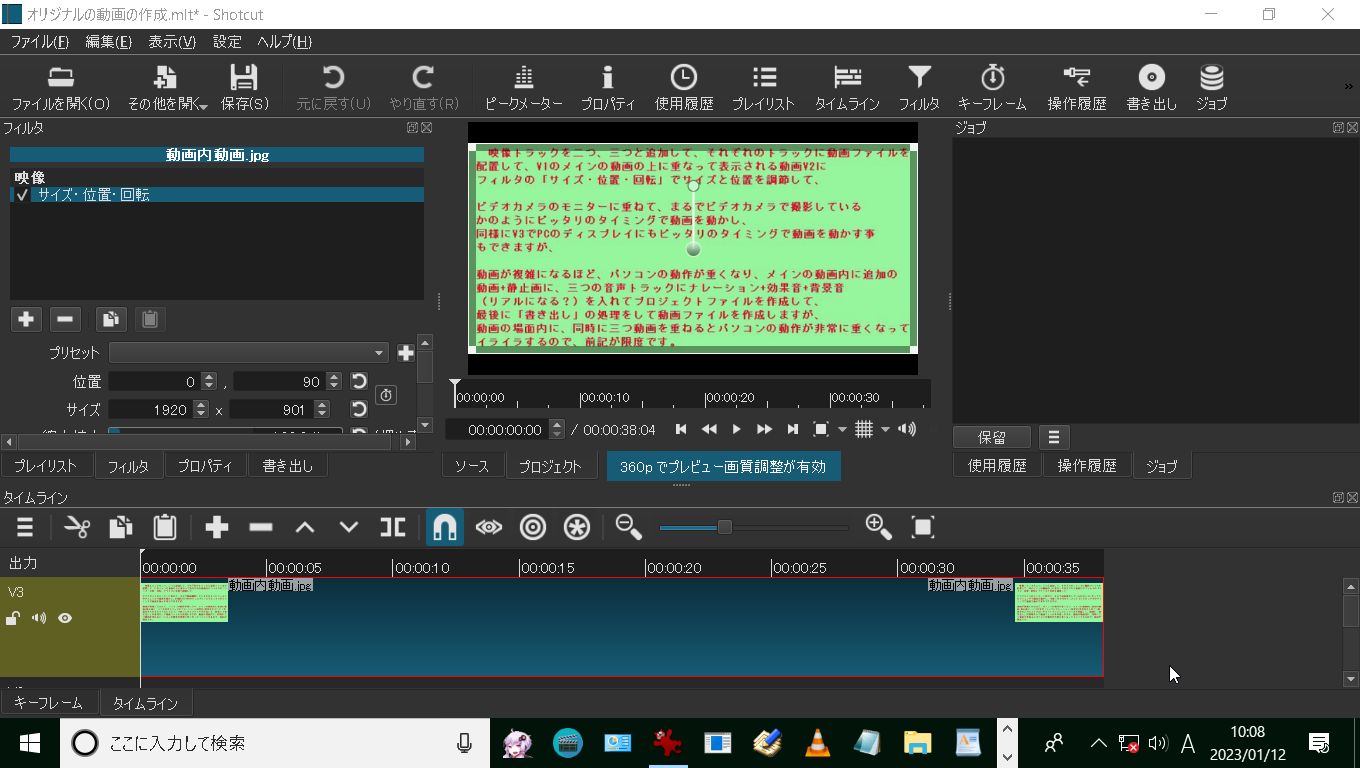 なお、フリーの動画編集ソフトの「Shotcut」は操作が独特な上に「フィルタ」処理の種類が多くて、初心者には少し使いづらいようですが、「好きこそものの上手なれ」の諺通り、自由自在に複雑で高尚?な動画を制作できます。