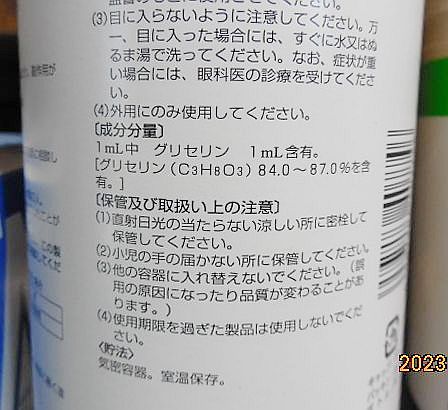 ![]() 私は、晩秋から冬を経て春まで、寒さや乾燥で手の指が酷く荒れて「ヒビやアカギレ」に成るので、過去に、白色ワセリンを指に塗っていましたが、白色ワセリンは水分を遮断するので、外側から指の皮の内部に水分が全く浸透しないので、逆効果になり、指の皮が乾燥し、ワセリンの作用か?指の皮が硬く硬化してきて、逆に手荒れが酷くなりました。 なお、私が異常体質なのかも知れません。 グリセリンには水分を引き寄せる作用が有るので、 グリセリン液を指に塗ってからゴム手袋を手に嵌めて、炊事などの台所仕事やパソコン作業を行うようにしたら手荒れが直り、手荒れや「ヒビやアカギレ」が全く起らなくなりましたが、グリセリン液を手に塗り過ぎると、ゴム手袋で密封する効果と重なって、指の水分が増え過ぎて、指の感覚が如何にも「水膨れしている」というような異様な感覚になりました。 今回の件で、ゴム手袋を手に嵌めるのを止めて、グリセリン液を頻繁に手に塗る事にしてみたら、グリセリン液を頻繁に手に塗る事だけで手荒れを防げる事に気付きました。 なお、グリセリンはハンドクリームや保湿クリームにも20%?程度含まれています。 市販されているグリセリン液には、グリセリンの含有率の低い(20%?程度)のグリセリン液と、含有率の高いグリセリン原液のような物が有りますが、私は下の成分表のような「グリセリン原液のようなグリセリン」を使っています。 ![]() 手の平と手の甲の両側、手全体にグリセリン液を満遍なく塗るようにしたら、手荒れや手の痒みが治まり、グリセリン原液は手荒れや手の痒みにコストパフォーマンス最高だと思っています。 画像のグリセリンは500ml入りでドラッグストアで800円程?で買って来た物です。 なお、私が異常体質なのかも知れません。 (垂れ目のアルバイトの、お姉さんの言い回しをパクらせて頂きました) 画像のゴム手袋は、手荒れ対策に使っていた物で、母の介護に使ったゴム手袋の使い回しですが、母は介護に、ほとんど手間が掛からない状態でしたので、ゴム手袋は、ほとんど必要無く、未だ6箱位残っていますが、冷暗所に保管していても経年劣化でゴム手袋の強度が徐々に低下してきているようです。 |