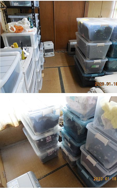 残念ながら母が亡くなったので、 母は家の中に増設したトイレだけを使っていて、全く使っていませんでしたが、念の為に座敷の隅に設置して有ったポータブルトイレと、そのトイレを乗せる手摺台を撤去し、 母が寝起きしていた布団も小さく切ってゴミ袋に入れて可燃ゴミとして出し始め、 半年も、一年も先まで足りるような大量の、ネット通販で買った業務用?の段ボール箱入り(4パック入り/6パック入り)の紙オムツも、ゴミ袋に入れて可燃ゴミとして出し始め、