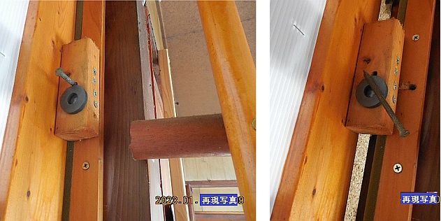 母が亡くなって間もない頃の事だと思いますが、愛知県田原市に在る蔵王山の東方の丘陵地帯の上に在る三菱東京UFJ銀行の同行専用のATM設置所で、私の銀行口座の残高確認をして見たら、「有る、有る、有る・・・とのメッセージ」とは裏腹で、私の米国での民事訴訟への寄付は全くなく、暗澹たる心境で「豊橋バイパス」を通って帰って来る途中、騙され、騙され、騙され・・・・・の繰り返しの連続の、その余りの憂鬱さから、対向車線を時速80キロ位で対向して来る大型トラックや大型トレーラーに正面衝突して全てを終わりにしようと思った事も有りました。 自宅に帰って来て、勝手口のドアのカギを開けて家の中に入って、台所の踏み台から「上りはな」と言う部屋に上がって私の部屋に行こうとしたら、台所の踏み台の、すぐ先の畳の上にドーナツ状の磁石と、磁石に吸い付いた釘が落ちていました。 ![]() 母が亡くなった直後から様々なメッセージを発していたので、上の画像の畳の上に落ちていたドーナツ状の磁石と釘を見て、これも母からのメッセージではと思いましたが、釘(金)が磁石(吸い付く)=今日は無かったけど、今に金が吸い付く!! と言うメッセージか? あるいは、本来の位置から剥がれ落ちているので、上記の逆で、金は吸い付かない!! と言うメッセージか? 母が亡くなって間も無い頃で、母からのメッセージの意味合いが未だ良く分かっていなかったので、上記の、どちらともとれる二股膏薬みたいに思えました。 余りにもピッタリのタイミングなので、本件の犯罪者の爺の仕業も疑いましたが、勝手口のドアの、ピッキングでの解錠が困難なドア埋め込み式の高価な錠に加えて、ピッキングに強い南京錠や、そもそもピッキングができないマグネット錠などを沢山かけて有る上に、勝手口の向かい側の上部にセンサーアラームを三台設置して有って、専用のリモコンで解除せずに、人が勝手口の辺りに来ると、けたたましいアラーム音が鳴り続けるので、犯罪者の爺が侵入した可能性は低いと思いました。 因みに、「上りはな」の西隣の「再現写真」の文字が貼り付けて有る部屋が座敷で母が寝起きしていて、「上りはな」の東隣の私の部屋で、私が寝起きしていて、寝ながら常時、母の様子を見守っていました。 私は、現在も、その位置関係のまま寝起きしていて、座敷の北側に設置して有る仏壇が座敷の暗いLED常夜灯に照らされて薄っすらと見えていて、円形の掛け時計で寝たままの姿勢で時刻を確認しています。 「上りはな」の明るいLED常夜灯も、座敷の暗いLED常夜灯も、寝ている私の目に直接光が届かない位置に設けて有ります。 ![]() 畳の上に落ちていたドーナツ状の磁石と釘は、 母が勝手にドアを開けて、「上りはな」から大きな段差のある台所に転がり落ちないように、ドアが開かないようにドアの側の穴と、向かい合わせの柱の穴に太目の釘を貫き通して置く為の物で、上の画像の左がドアが開かな状態で、画像の右がドアが開いている状態す。 ドーナツ状の磁石は、ドアを開けようとしてドアをガタガタ動かしても、その振動で穴に貫き通した太目の釘が抜け落ちないように磁石で釘を吸引保持して置く為の物です。 元々、この位置に普通のドアが付いていましたが、そのままでは改造し難いので、元々のドアを撤去して、材木とプラスチック段ボールでドアを作って嵌め込みました。 なお、「再現写真」を取る為に、ドーナツ状の磁石を元の位置に両面テープで貼り付けて撮りました。 ![]() 高齢の母が「上りはな」から大きな段差のある台所に転がり落ちたら命にも関わるような大怪我をしそうでう。 母が大きな段差から転がり落ち無いように、家の中の様々な危険な個所に同じような、ドーナツ状の磁石と太目の釘の仕掛けをして有りますが、前記の他のドーナツ状の磁石は今も全て接着された状態のままで、一か所も脱落していません。 ドアの黒い円の部分にゴム用の接着剤でドーナツ状の磁石を接着して有りましたが、真っ黒の上に指先で触ってみると、表面が平滑であり、ゴム用の接着剤は黄色いのに何で、こんなに真っ黒で平滑なのかな?「未知の力」で接着剤が変質したのだろうか? 真っ黒だから、「未知の力」で接着剤が瞬間的に炭化したのだろうか? ひょっとしたら地球上で未だ見つかっていない物質や原子に変わっているかも知れないと思いましたが、 強力なLEDライトで照射して拡大鏡で見てみたら、薄いゴムシートのようであり、ドアの木に床用のニスを塗ってあるので、接着し難いと思って、予めドーナツ状の磁石に薄いゴムシートを貼ってから、ドーナツ状の磁石からはみ出しているゴムシートを鋏で切り除いて、ゴムの面とドアの木の面の間にゴム用の接着剤を塗って接着したようです。 いずれにしても、極めて重大な日に、ピッタリのタイミングで剥がれた落ちた不思議は残ります。 母が居る世界には、「未知の力」を使っても良いが、絶対に証拠を残し