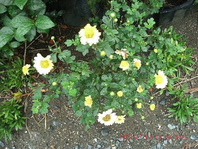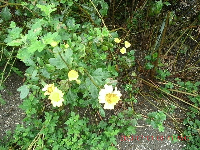 露地栽培では、通常、秋に咲くはずの菊の花が咲き始めました。 2023年6月7日に撮影しました。 菊の花の色は黄色です。 母が育てていた菊の子孫です。 ![]() 下は上の画像の菊の株を、2023年7月1日に撮影した画像です。 菊の花の色は黄色です。 母が育てていた菊の子孫です。 株元から沢山の茎が伸びた大きな株の一ヶ所目です。 ![]() ![]() 下は上の菊の株から少し離れた別の場所の菊の株を、2023年7月1日に撮影した画像です。 菊の花の色は黄色です。 菊の株全体に満遍なく蕾がついていますが未だ花は開花していません。 母が育てていた菊の子孫です。 株元から沢山の茎が伸びた大きな株の二ヶ所目です。 ![]() ![]() 下は上の画像の菊の株から遠く離れた別の場所の菊の株を、2023年7月1日に撮影した画像です。 母が育てていた菊の子孫です。 菊の花の色は黄色です。 菊の大きな株全体に、画像の一番上の方まで満遍なく蕾がついていますが未だ花は開花していません。 株元から沢山の茎が伸びた大きな株の三ヶ所目です。 昨年、この辺りの菊には薄赤紫色の花が沢山咲いていた「はず」ですが?? ![]() ![]() 庭に、母が育てていた様々な花の色の菊の子孫が生えていますが、蕾をつけている菊は三株とも黄色です。 なお、菊の株の植え替えは昨年から一切していず、昨年の株から急速に成長した株です。 下は、昨年、ヨドバシのネット通販で「日本小菊」の種を買って、種から育てた菊で、全く蕾が見当たりません。 昨年沢山花を咲かせましたが、花の色は、我が家の菊や、早朝散歩中に見かける菊と同じような花の色で、菊の花の色は限られているようです。 ![]() |