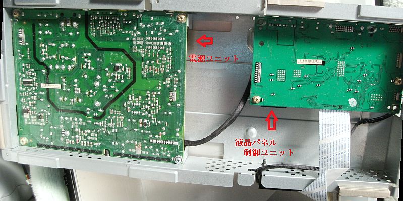 ブルーレイレコーダーで地デジ番組を予約録画しながら観たり、PC動画を観るのに使っていた27インチ・パソコンディスプレイ(BenQ GL2750)が故障して、緑色の電源ランプが点滅を繰り返しているだけで全く映らなくなったので修理して見ました。 (画質モード:AE(2.0)のハイビジョン録画の最低画質?で録画)していますので、1TバイトのHDDに約1000時間の番組を録画できるので、一応録画しているだけで、番組を予約録画しながら観ているので、二重に成るので、実際には録画した番組は観ません) インターネットで調べてみたら、「緑色の電源ランプの点滅」は電源が故障している症状で、故障した電解コンデンサーを取り換えるだけで治る場合も有るようですので、ディスプレイを分解してプリント基板を剥き出しにして見ました。 |